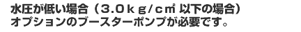 最近のマンション・戸建の住宅では、水圧が高いところが標準的ですが、水道の供給方式などで3.0kg/cu以下の場合はブースターポンプが必要になります。付属のキット込みで